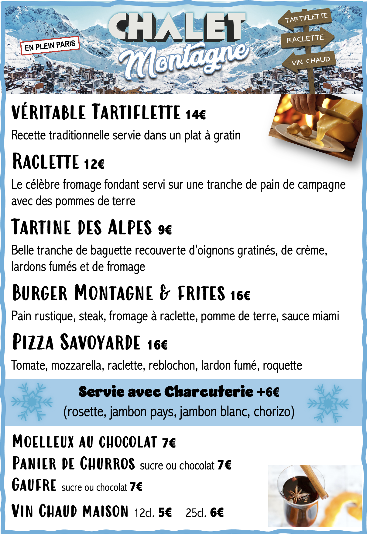 Cet hiver, on transforme le Miami Boulevard en station de ski, vous allez adorer nos spécialités venues directement de la Montagne dans une ambiance totalement inédite et festive en plein centre de Paris.