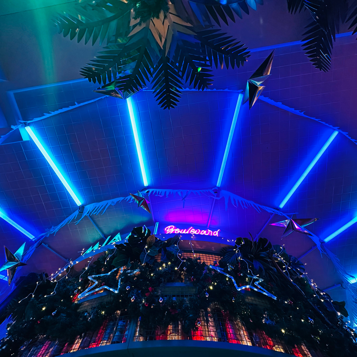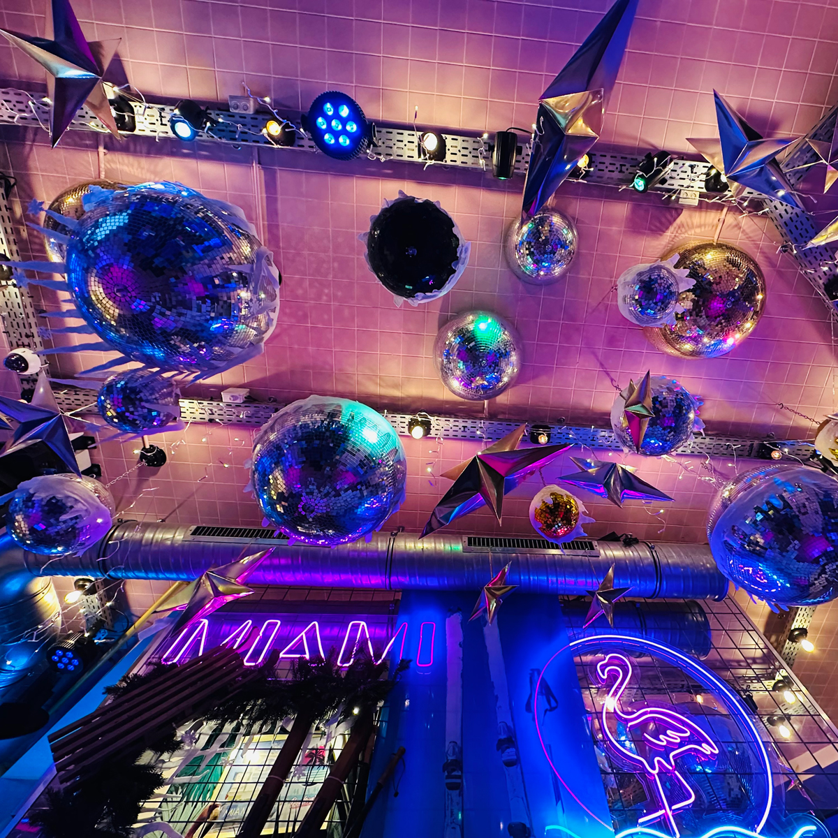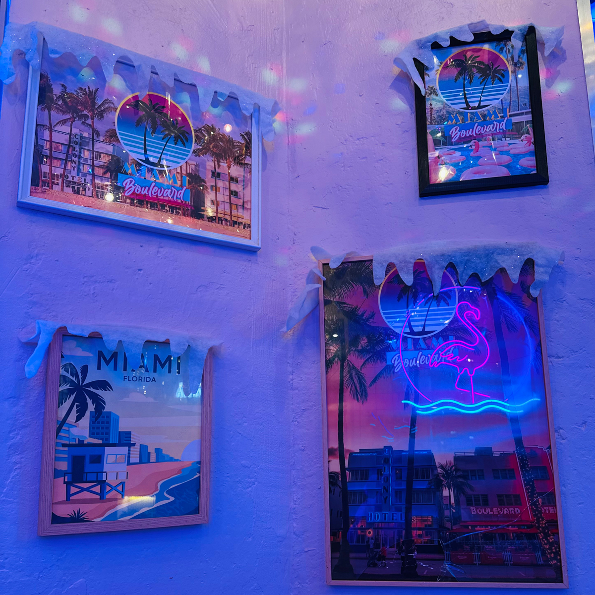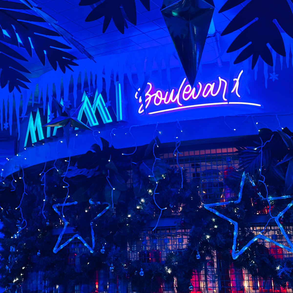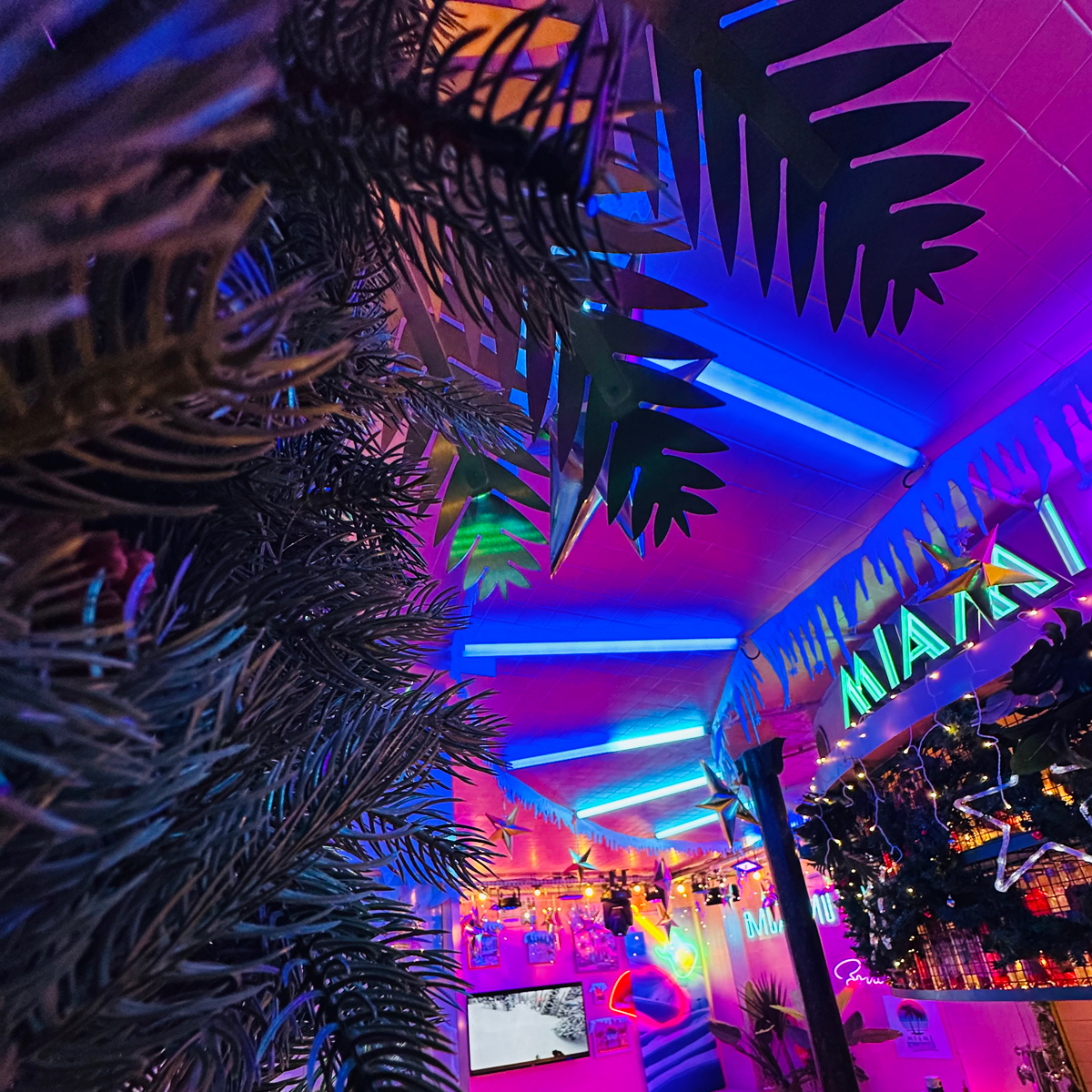 Miami Boulevard c’est très grand, deux niveaux, une belle véranda et une énorme terrasse. De nombreux espaces, tables et banquettes dans un univers digne de vos séries préférées.